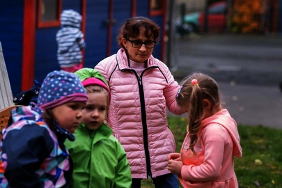 Um auf Ausflügen den Überblick zu bewahren, übernimmt Marianne Marks immer die Spitze der Kinderkarawane. Bis letzten Sommer hatte sie auf Ausflügen, in der Bewegungsbaustelle, beim Turnunterricht und im Garten außerdem personelle Unterstützung. Eine vom LWV Hessen Integrationsamt finanzierte Studentin kam sechs Stunden pro Woche – aktuell wird nach einer Nachfolgerin gesucht.